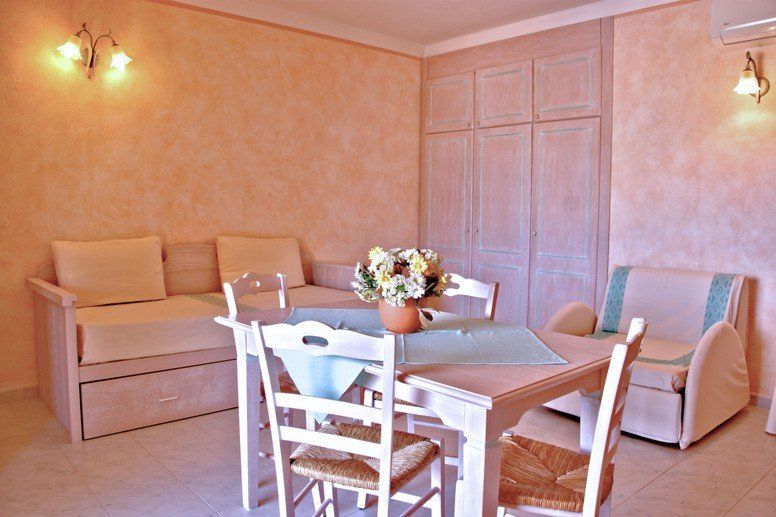 Dotazione: Camera con letto matrimoniale, soggiorno con divano letto 2 posti e poltrona letto, angolo cottura con frigo a colonna fornelli a gas, bollitore elettrico e tostiera, bagno con doccia e asciugacapelli, aria condizionata, tv lcd in camera da letto ed in soggiorno, cassaforte.