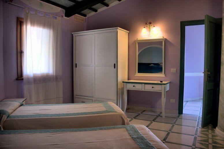 Dotazione: E' composto da una camera con letto matrimoniale e una camera da letto con 2 letti singoli, due bagni con doccia, zona giorno con tavolo e sedie, divano letto e cucina completa di forno. Dispone di aria condizionata e tv lcd in ogni stanza.