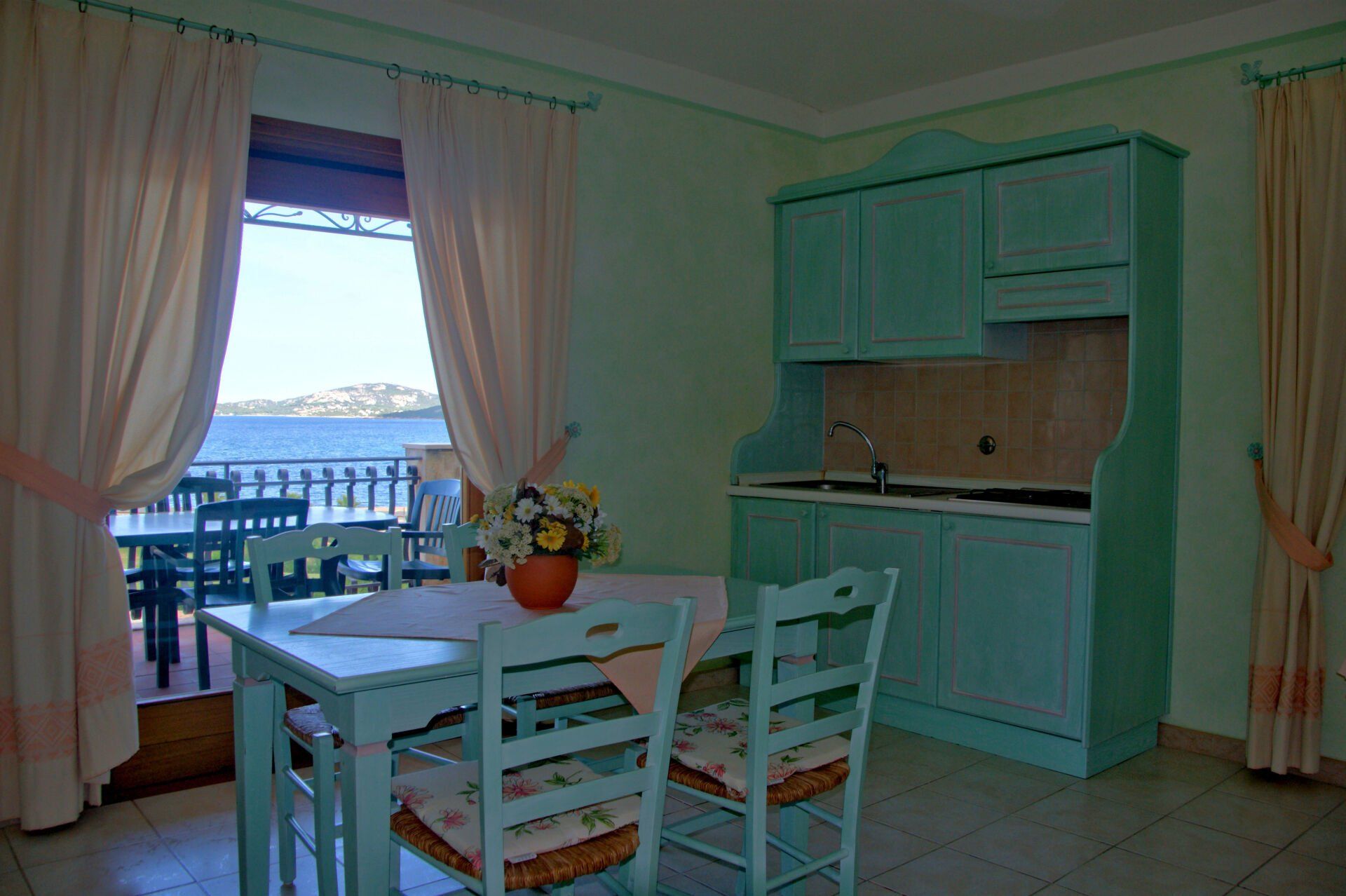 E' l'appartamento classico, composto da camera da letto e soggiorno con divano letto ed angolo cottura; questa tipologia è disponibile al piano terra ed al primo piano entrambi con terrazza vista mare.